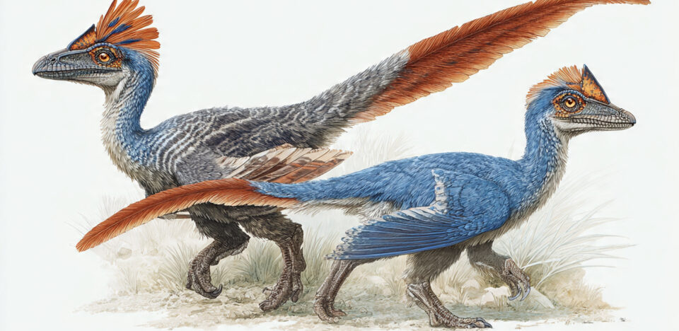 Quais dinossauros com penas foram descobertos no Cretáceo e o que isso revela sobre aves modernas?